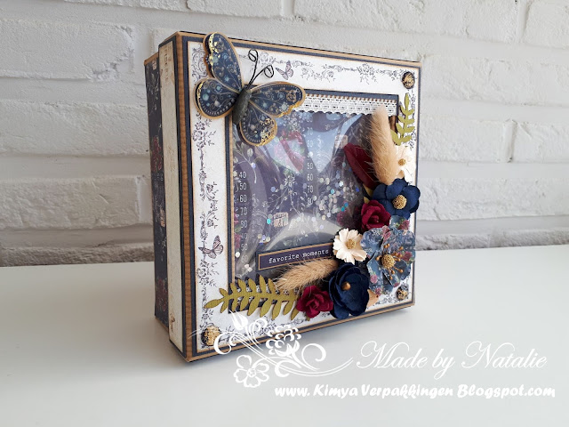 Vandaag wil ik jullie het projectje tonen waar ik de laatste weken aan bezig was. Voor mijn creatie gebruikte ik een kraft doosje met venster. Deze keer ging ik aan de slag met de prachtige collectie Darcelle van Prima.